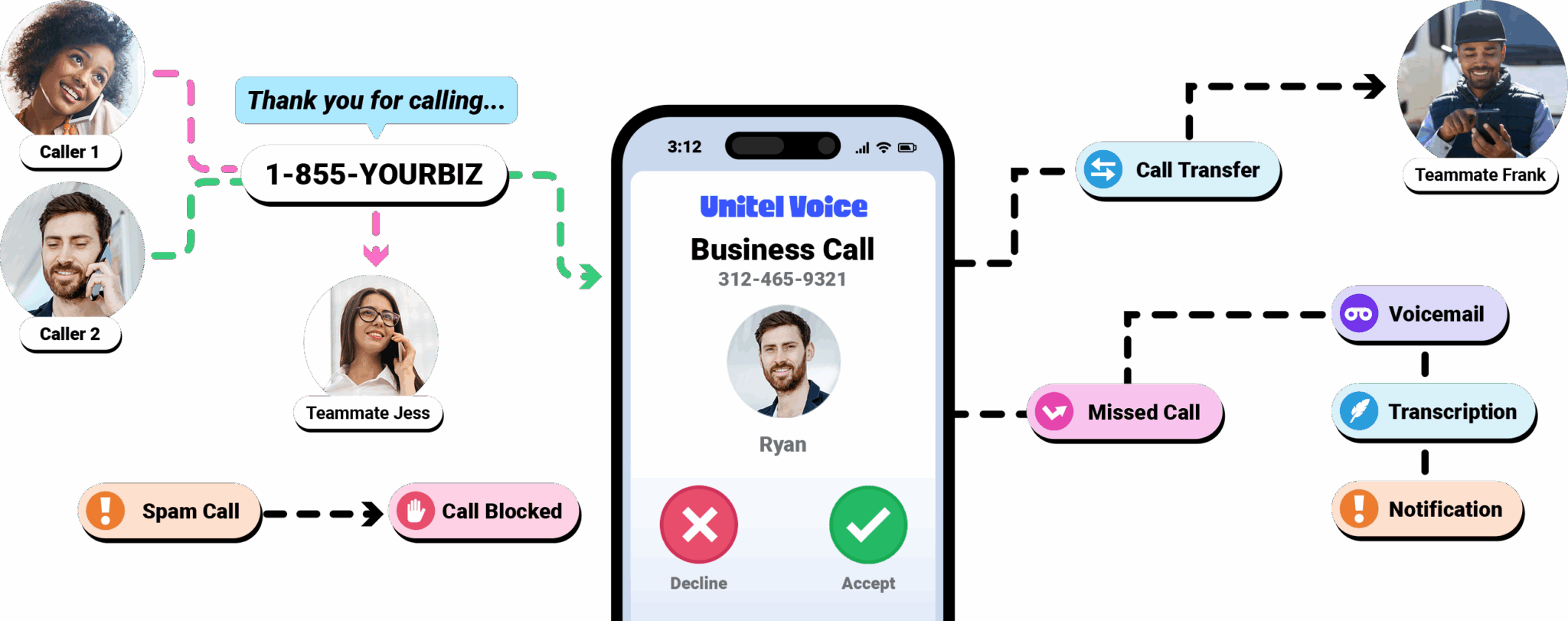 Unitel Voice is suited for businesses that require centralized communication management, including remote teams, multi-office locations, startups, home businesses, and online service providers. Industries such as agencies, healthcare, education, retail, and real estate may find these features particularly useful.